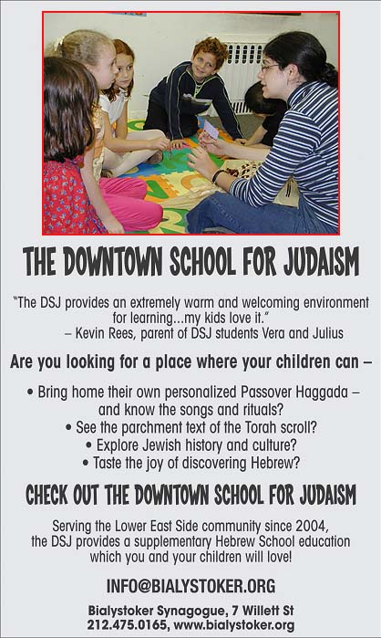 Read Rabbi Romm's description of the program. Sessions meet in the Daniel Potkorony Educational Center of the Bialystoker Synagogue. The cost is $400 per semester, which entitles each family to 2 free High Holiday tickets in our synagogue. You can sign up by calling us at 212-475 –0165 between 9:00 AM and 2:00 PM Mondays through Thursdays or e-mail us at info@bialystoker.org We’re looking forward to meeting you! Read more about the exciting programs of the Downtown School for Judaism in the Jewish Week article written by our own Yitzchok A. Dawidowicz. Downtown School For Judaism Application for Admission Date of Application ___________________________ Applicant’s Name ____________________________ Full Hebrew Name __________________________________________ Date of Birth ________________________________ Place of Birth _____________________________________________ Home Address ______________________________________________________________ Phone & Cell Phone # ______________________________________________________________ Child’s Physician & Phone # ______________________________________________________________ Father’s Name & Hebrew Name _____________________________________________________________ Mother’s Name & Hebrew Name _______________________________________________________________ Grandparents